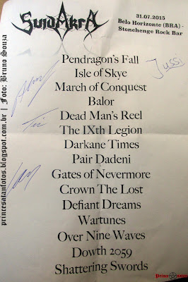 O público não foi muito grande, mas o pessoal que compareceu bateu muita cabeça. O Suidakra é uma banda muito boa, todos os integrantes são uns caras muito gentis e atenciosos com os fãs. Só que o setlist foi muito curto, e a apresentação da banda não durou nem uma hora.